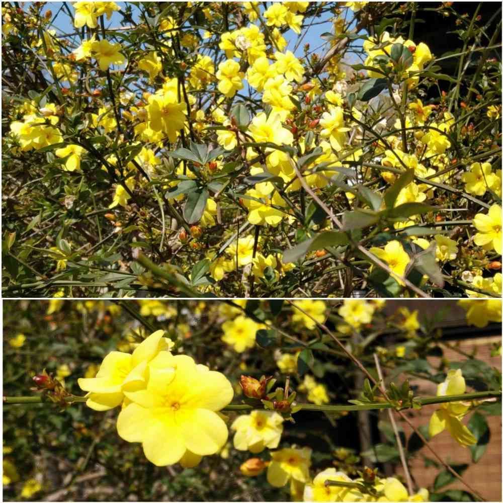 オウバイは落葉樹なので、花が咲くときに葉っぱが無いそうです、ウンナンオウバイは常緑樹