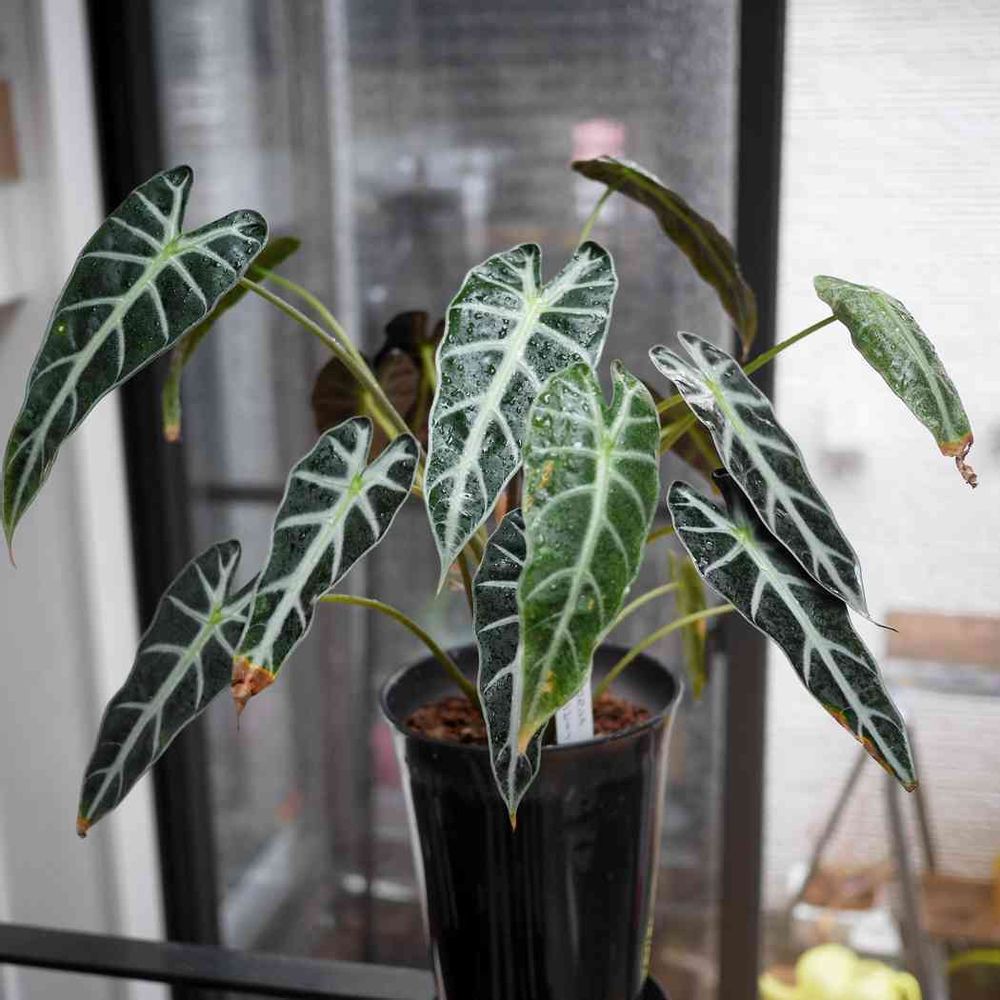 ウチは他の植物の為に風通しは欠かせないのですが、アロカシアにも良かったようです。比較的通風が弱い場所にもう一株小さめな株がありましたが、そちらはダメでした😖