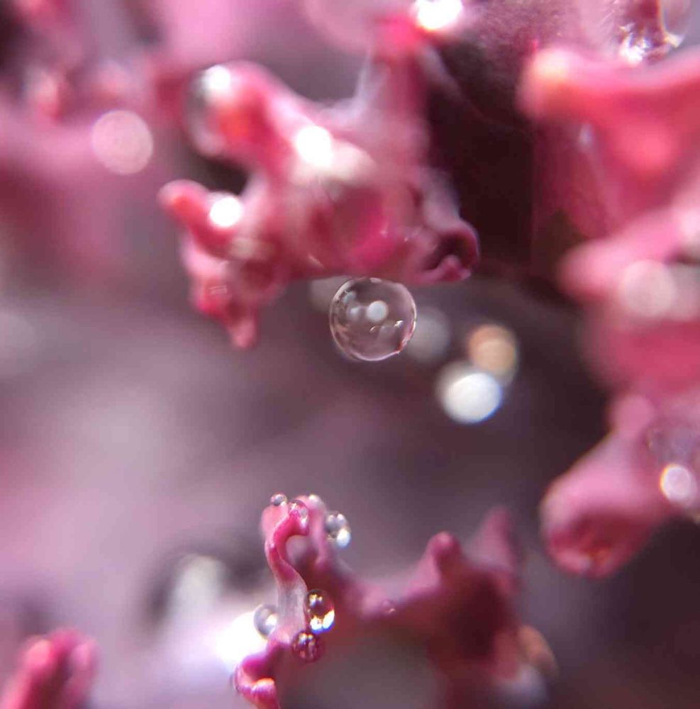 ま〜るいね✨✨🎶ピンクの葉っぱの中で可愛いしずくちゃんが光って、ぷくぷくお喋りをしていそうね🌸💕