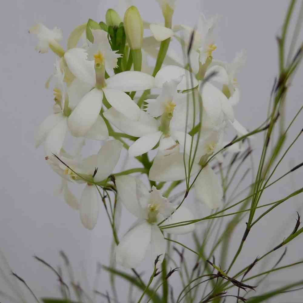 お花屋さんの店頭で目に留まった白いエピデンドラム。