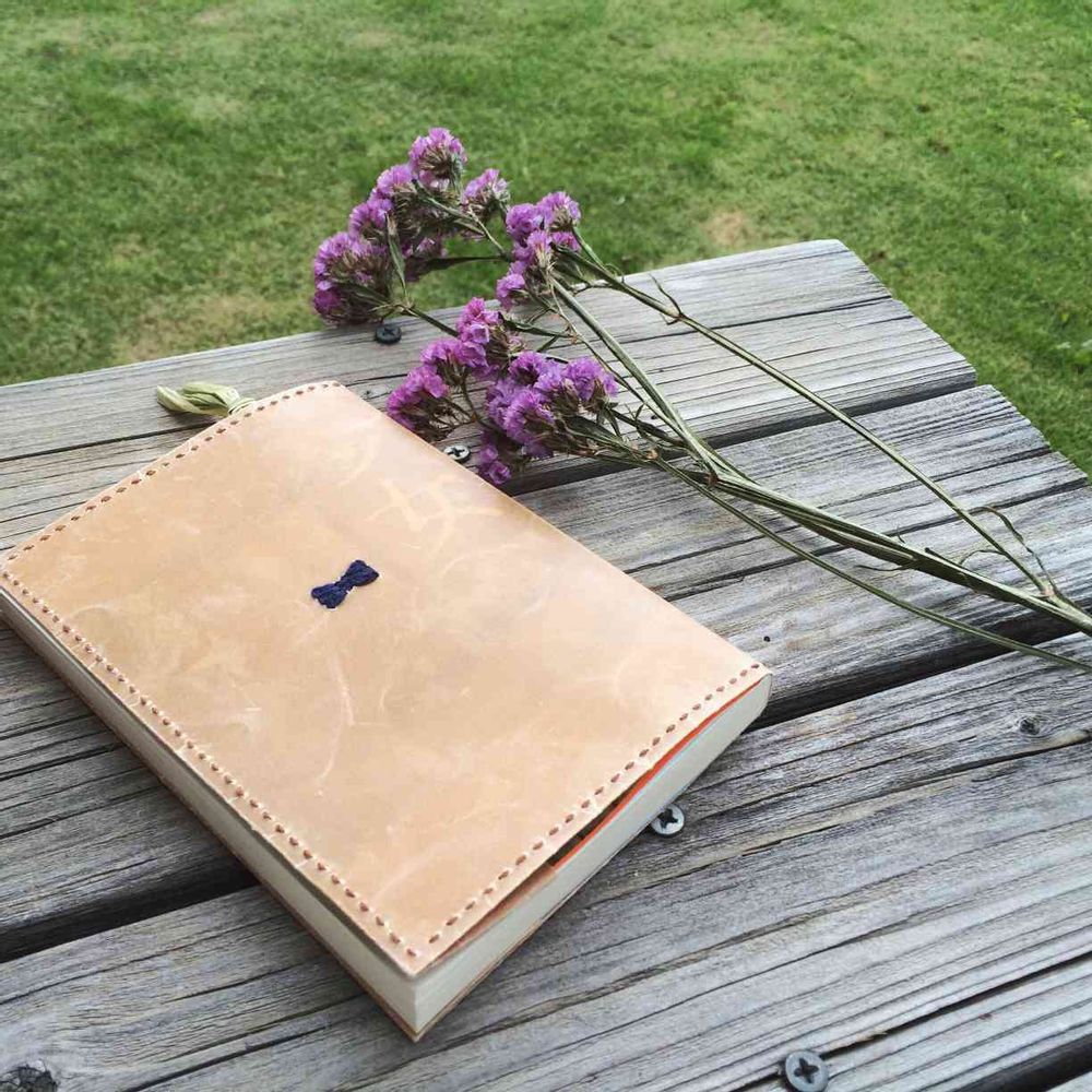 溶かしたロウを染み込ませてつくったワックスペーパーで使ってつくったブックカバーと、ドライにしたスターチス。花と一緒に撮るといい感じになりますよねー!