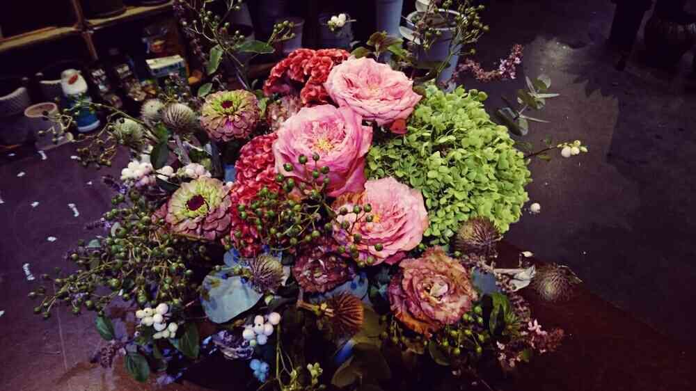 他にもアンティークなグリーンや大人なダークピンクとか、色んな色目があってこの時期良く使う花材なんです(*´∀`)