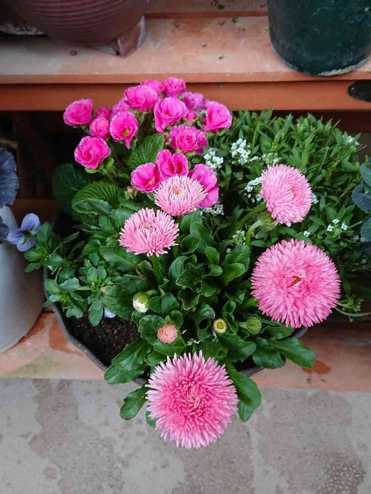 デイジーの所にオレンジのジュリアンを植えてたけど何故かその子だけダメになり、デイジーを植えたらピンクピンクになってしまいました😂