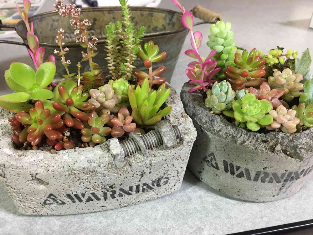 素敵なコンクリ鉢に可愛く並べました😁😆