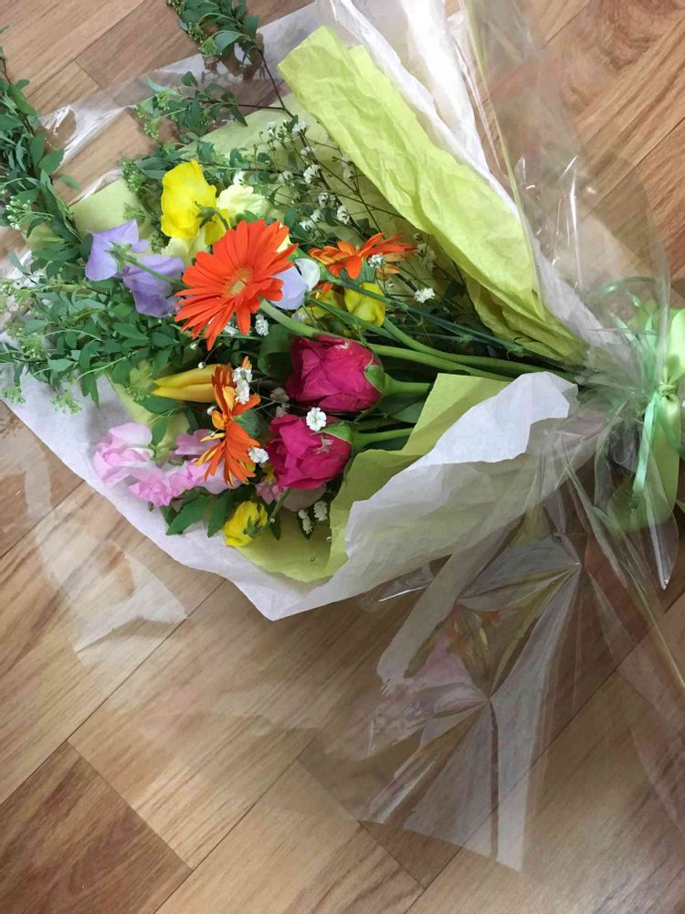 ラッピングも何回も練習でやり直しくしゃくしゃになり、やる気なくしてひどい花束💐に...🤣🤣