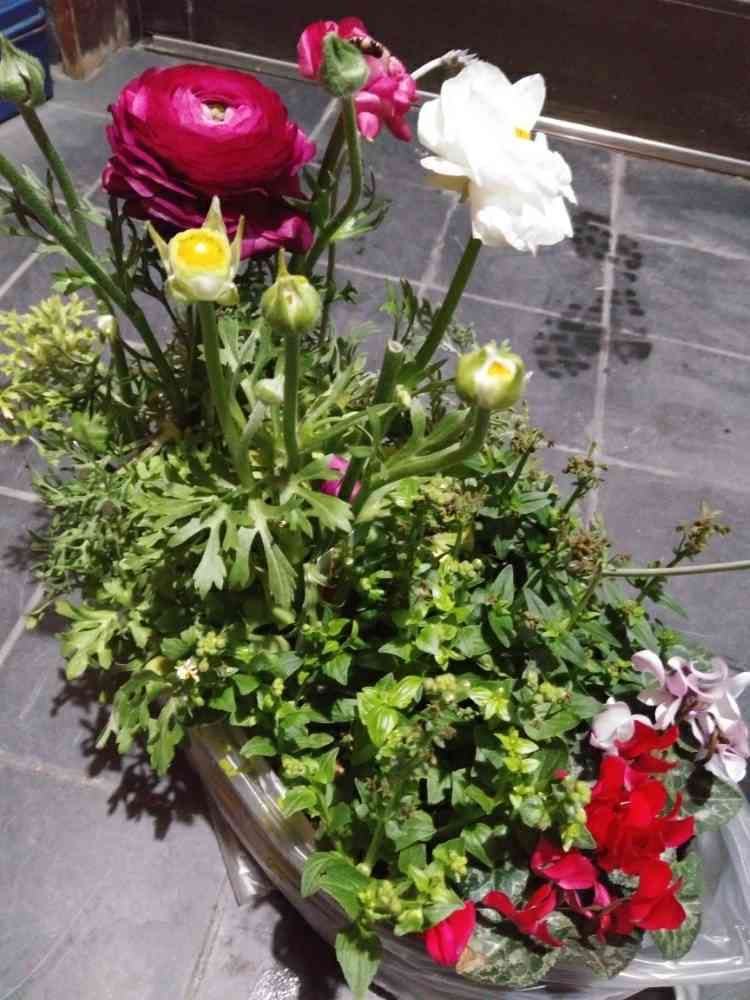 ラナンキュラス紅白、レースラベンダー、ミニシクラメン、名前???2種類