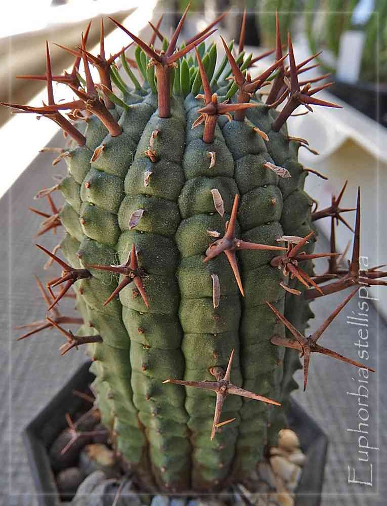 ユーフォルビア、群星冠。この「緑のトウモロコシ」みたいな肌の様子が群星冠の特徴のひとつと思っていたんだけど、最近、そうでもないように思えてきた。 この群星冠も、かなり大きくなったので、今度は植え替えしないと。
