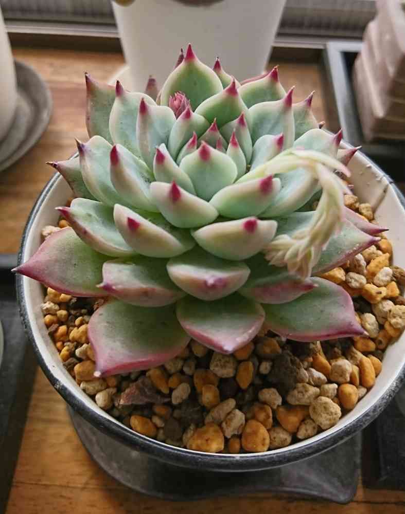 さん、おはようございます✨他のエケベリアと違い、爪が鋭い、花が違うかな?楽しみです😃