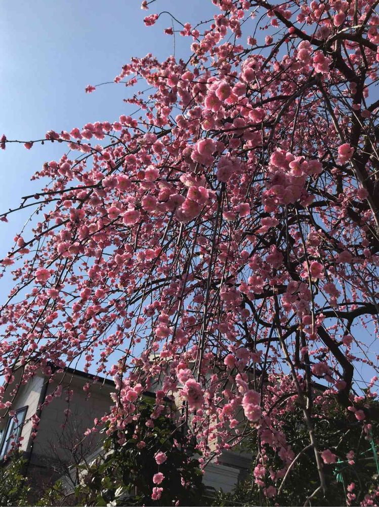 下から見上げると、枝垂れ梅の🌸が