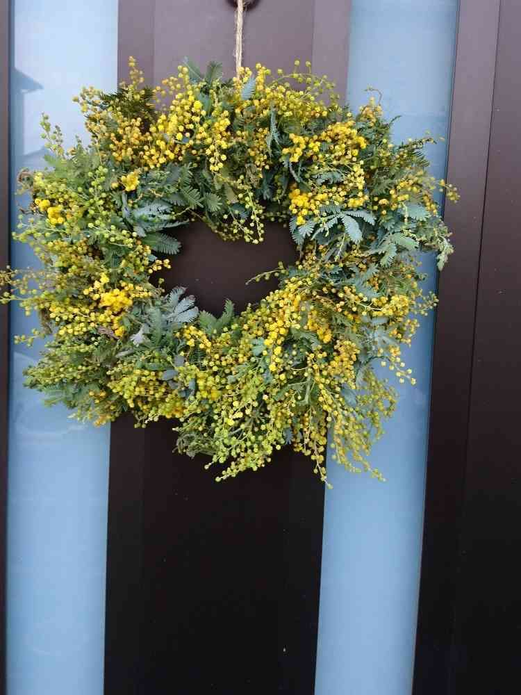 玄関,花のある暮らし,ミモザのリース飾りの投稿画像