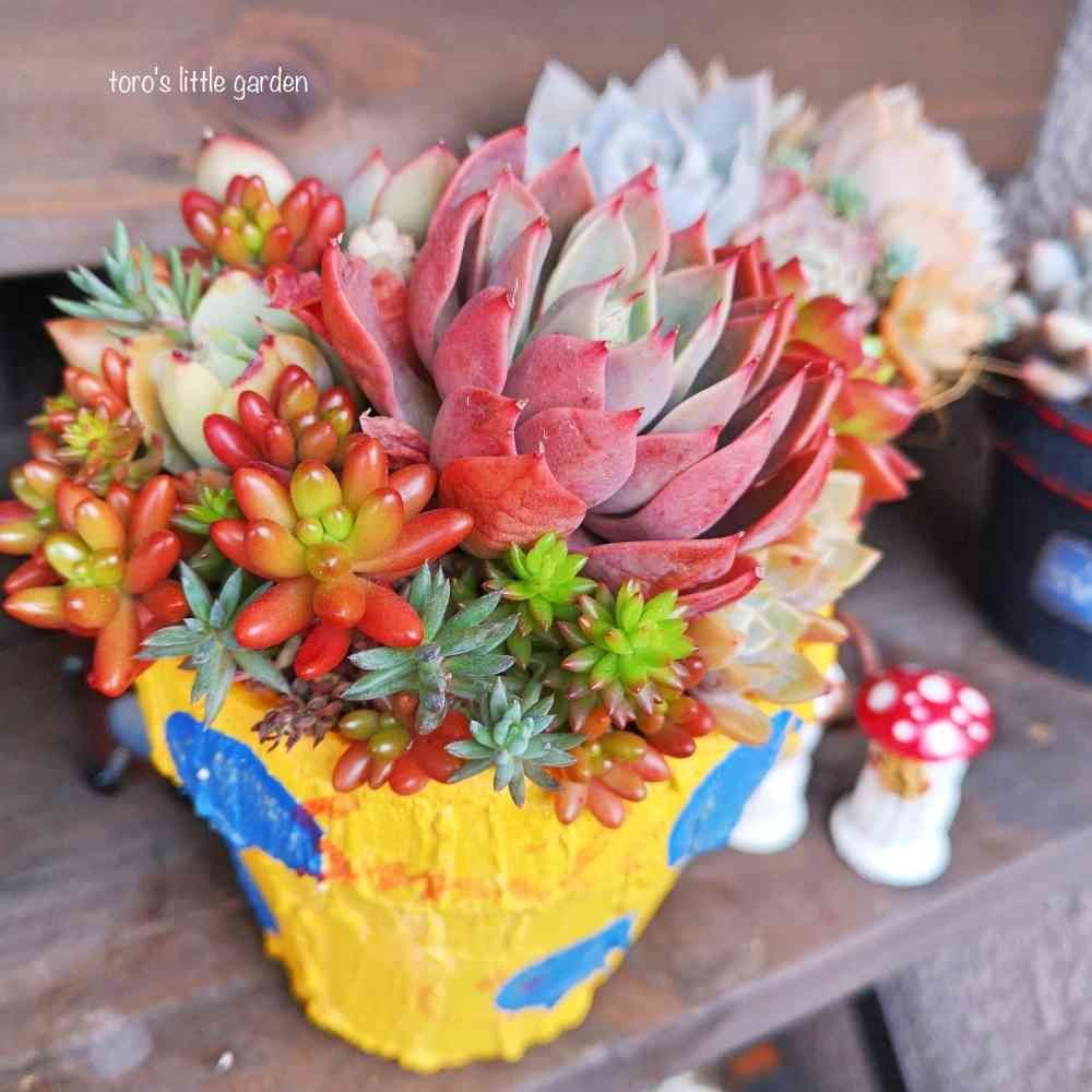 げんげんちゃんの作品は作品からげんげんちゃんの元気パワーが溢れてるから、それに合わせたカラフルで元気な寄せ植えにしたつもりです( ´罒`*)✧