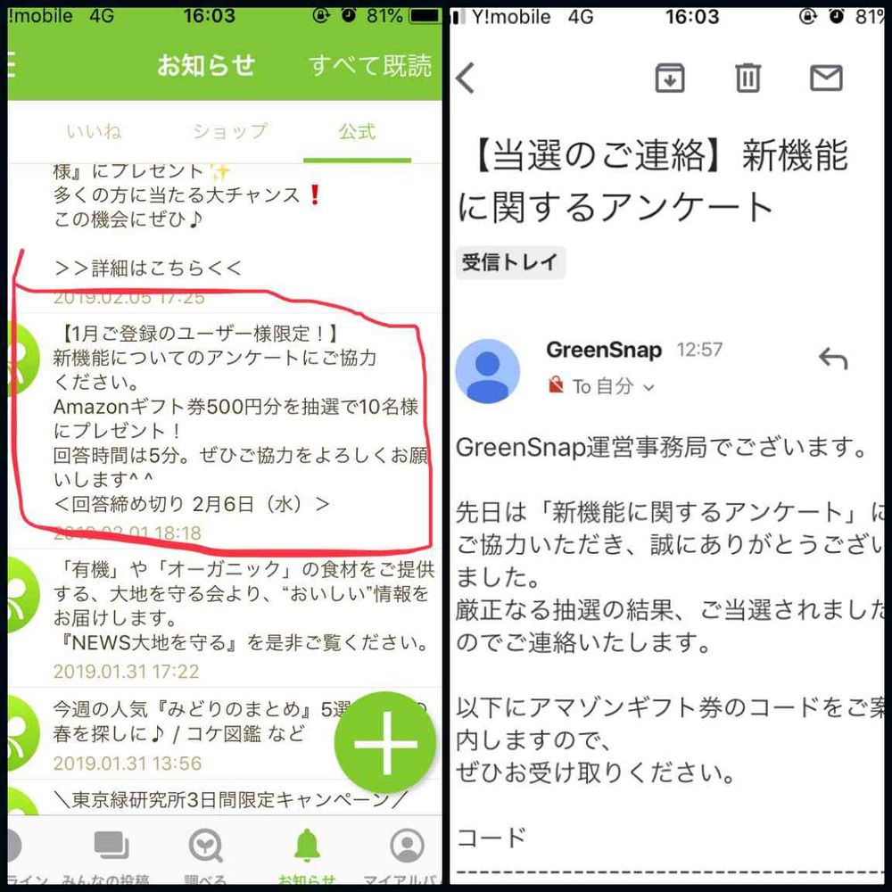 あ、でも1月にGSのアプリに登録した人の中から10人らしいですよ💦なのでめっちゃ少ないかもしれんし当たる確率がわかりませんね🤣私も当選なんか考えてなくて、改善してほしい所があったんで力説したら当たりましたw