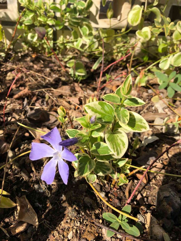 わが家のツルニチニチソウ、開花第1号🌸どんどん次が控えてます。