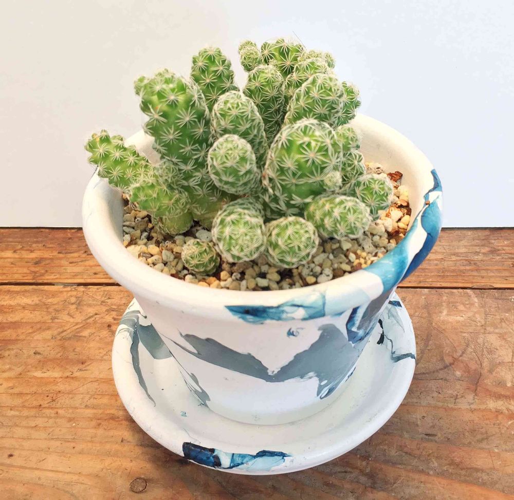 オリジナルのマーブルポットにサボテンを植えました♪