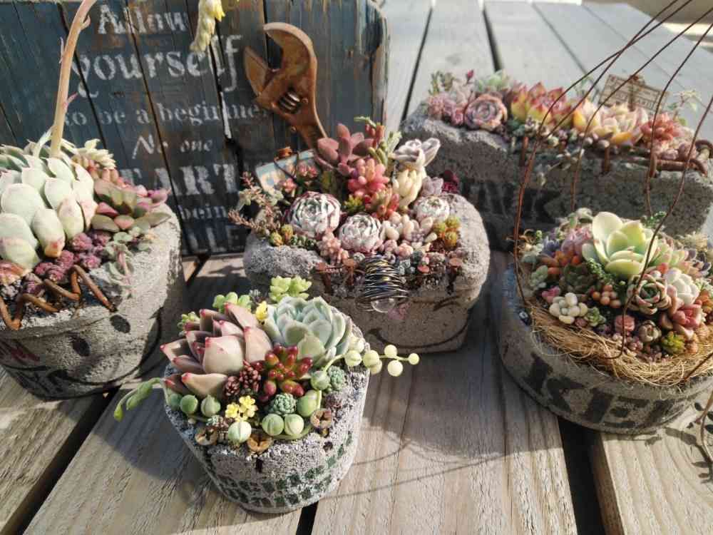 ikuraちゃんのコンクリ鉢と寄せ植え✨