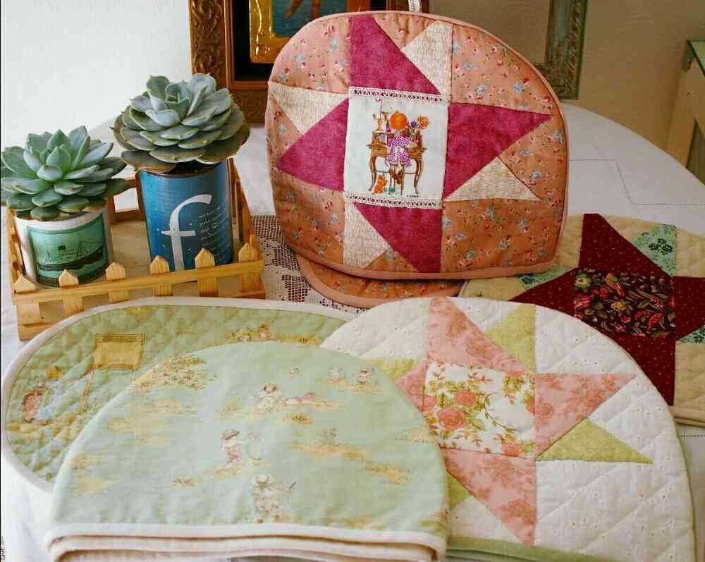 パッチワークのは後ろ側は違う色柄で作ったヨ💙