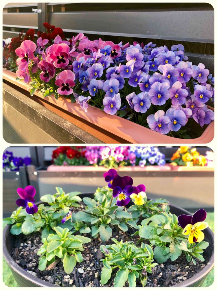 零れ種でアチコチに芽吹いてきたものを秋にプランターに集めた子たちです💜
