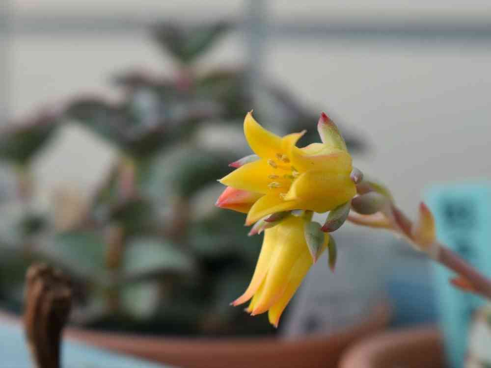 1月中旬、多肉の"魅惑の月"が黄色い蕾をつけましたが、蕾のままひと月が経ち、なかなかお花が開きませんでした😓