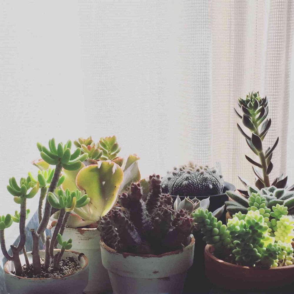 夏は東の軒下に移動する多肉植物ですが、軒が浅くて台風だと濡れてしまう💦…ので、室内に取り込んだときの一枚。