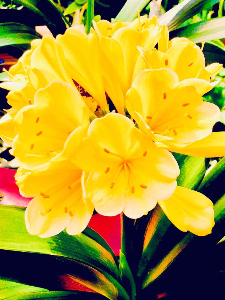 薄い黄色の君子蘭は見た事ありますが、こんな鮮やかな君子蘭もあるのですね💕