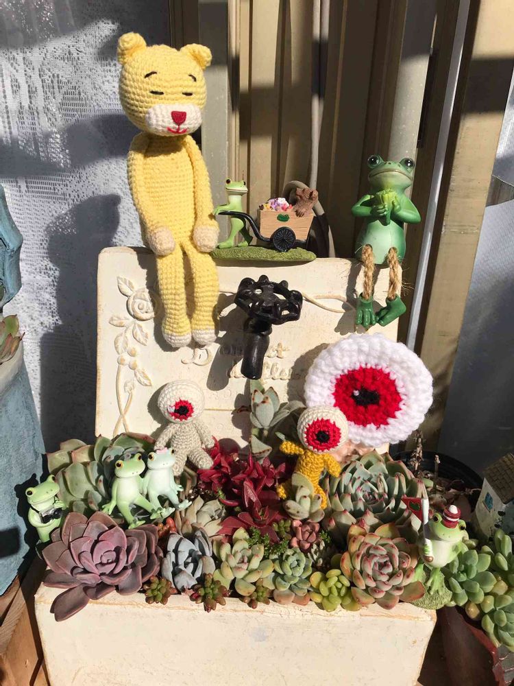 た〜くさんの多肉ちゃんとにゃの子チャン🎵カエル🐸チャン🎵と賑やかで