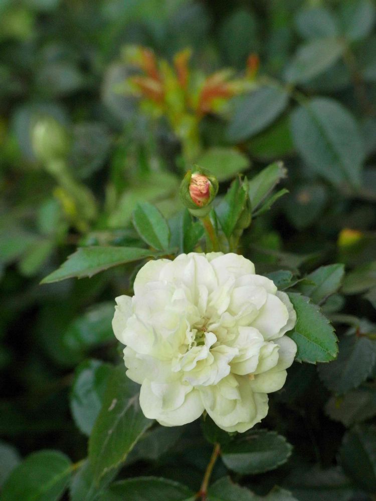 グリーンアイスというミニバラはとても強い子で、この夏もしきりに芽を出し花を出しで良く咲く。肥料をあげないと葉がぼろぼろになるまで咲くので、適当なところでいつも花芽を間引いてあげます。時々、赤みがツボミと花びらに挿してカワイイ。