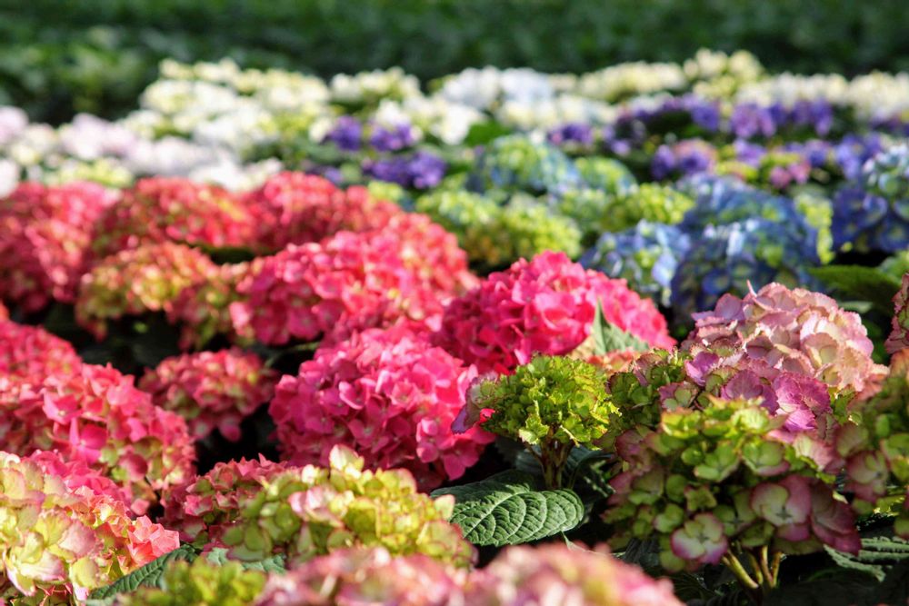 早めに開花させたアジサイたち。ピンクや青の出方はどうか…などを見ています。こうして一堂に集めてみると、こんなにもカラフルなのかとビックリです!これからの開花シーズンに向けて、心が躍りますね♪