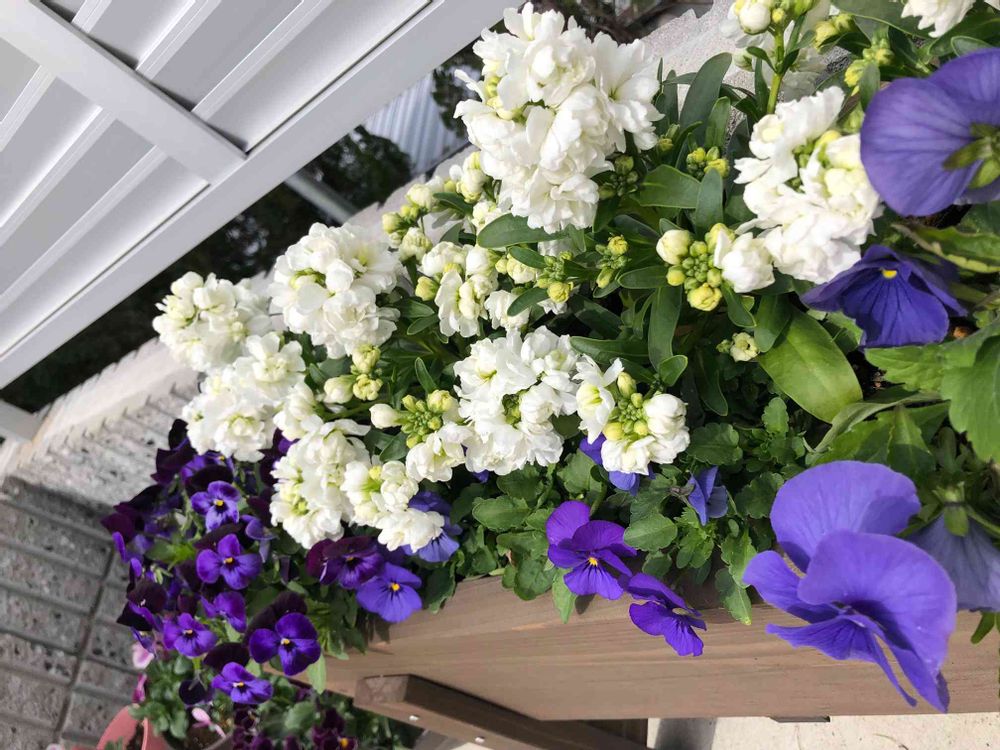 タキイさんのキスミーホワイトという種類です🎵思ってたよりずいぶん低い位置で咲いてくれました💕