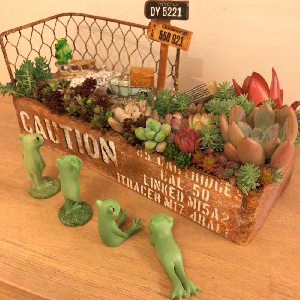 素敵なジャンク箱庭をカエル🐸ちゃんがジーと見てる可愛い😍💕