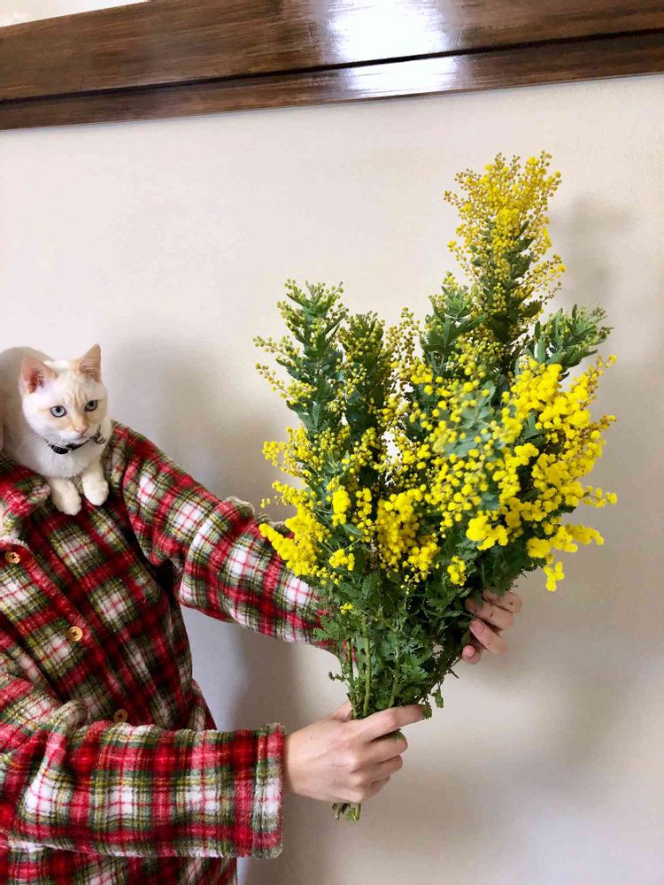 先日ハニーの誕生日だったので、京都のドライフラワー専門店プルミエ・エタージュでドライフラワーを堪能して貰ってからのミモザプレゼントって流れです😉✨