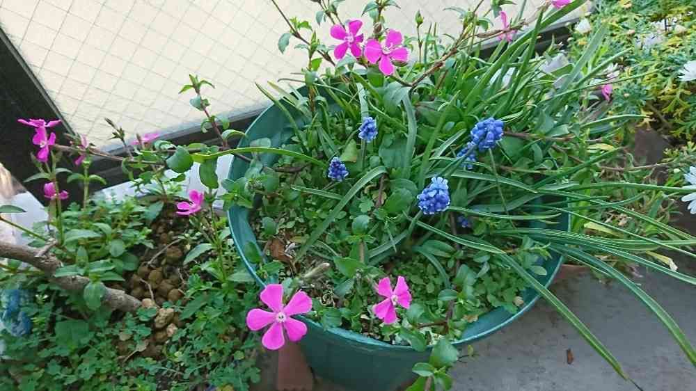ムスカリをいっぱい植えたはずが、ツルコザクラの芽が出て来てそのままにしてたら養分取られ