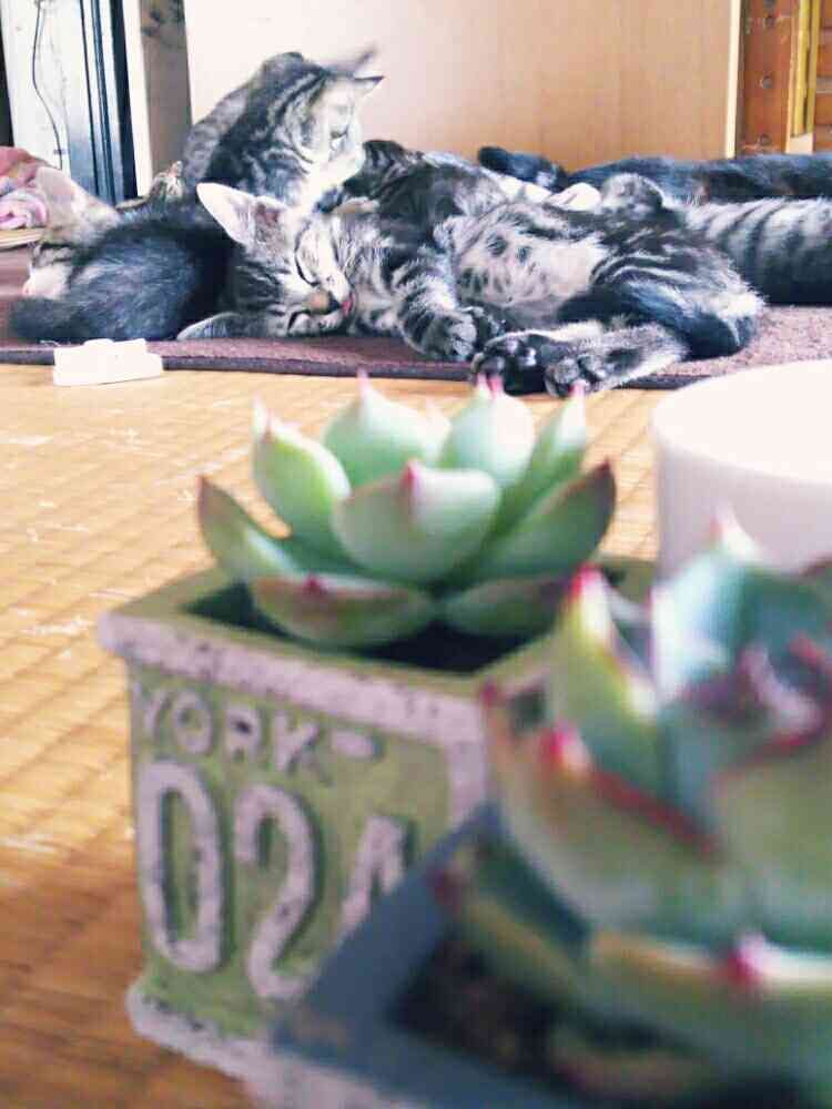多肉ちゃんもにゃんこも癒されますぅ(*´∀`)🎶