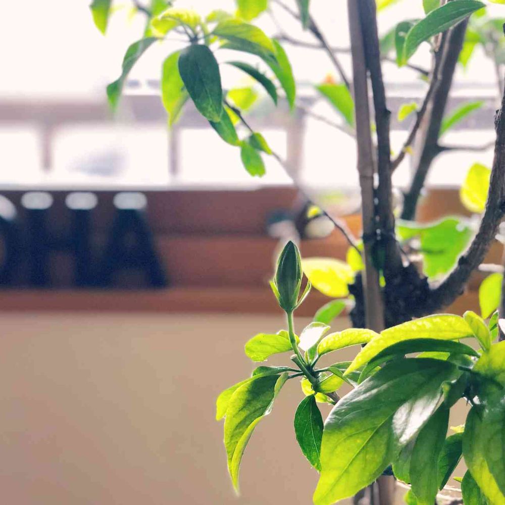 ハイビスカスの花が全部咲き終わってきょうは咲いていないなぁと思いながら水やりしていたら…新しい蕾を発見!