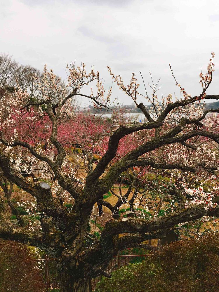 こんなに広いとは思っていませんでした。高いところから見渡すと、梅が色とりどりで、千波湖に続く景色が綺麗で、幸せな気持ちになりました🌸