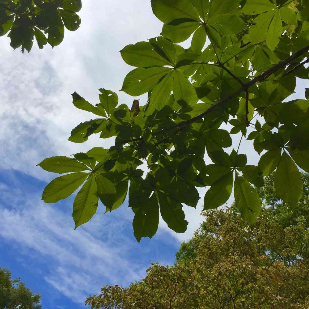 トチノキの葉っぱ、かわいい形ですね«٩(*´ω`*)۶»紅葉したら綺麗だろうなぁ🎵