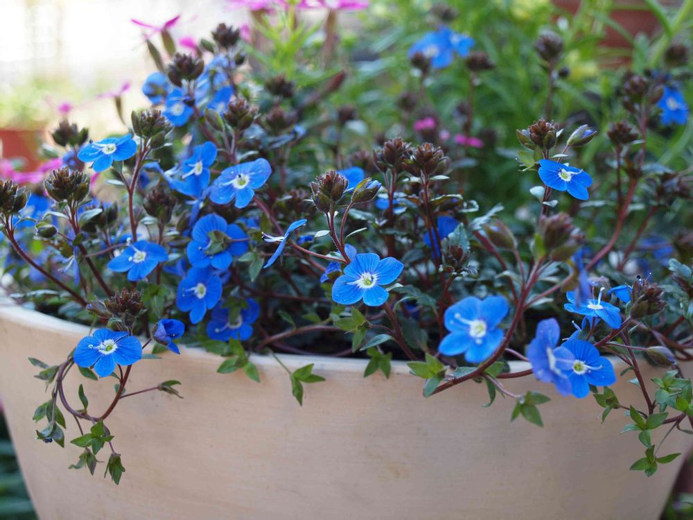 青い小花もかわいいし葉っぱも銅葉なので花がない時も楽しめます🎶