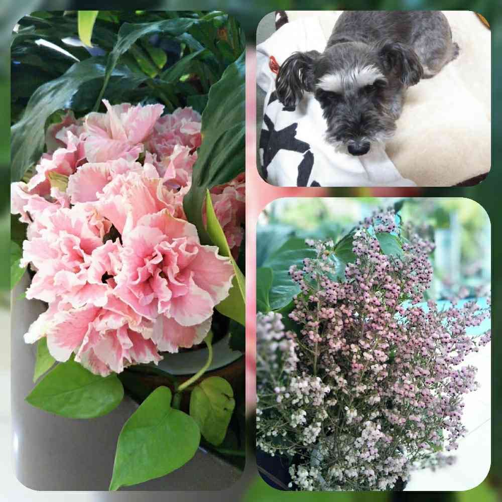 ピンクの花何の花か分かりませんが、イオンモールの通路にまたまたありました。そしてお馴染み愛犬ニコル。マッタリしている所をパチリ📷