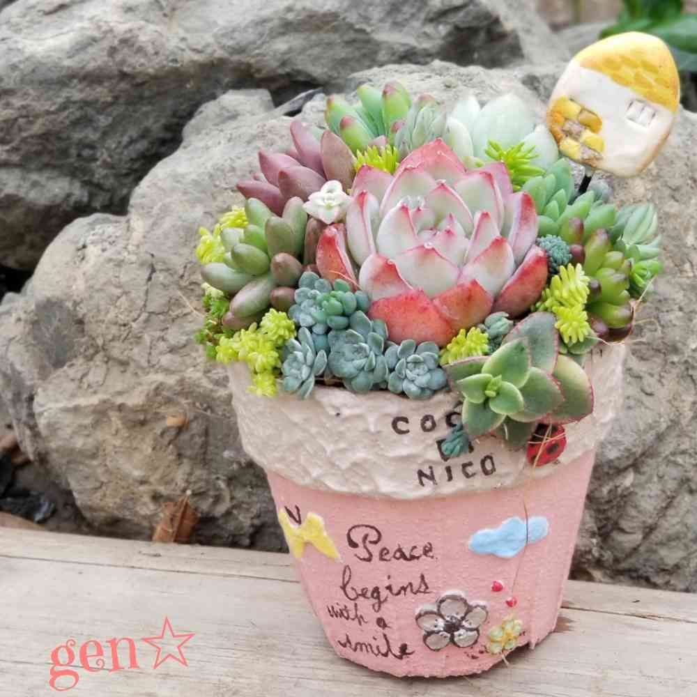 昨日我慢できずにインスタの方にはpostしてしまいましたが、イベントでの寄せ植えWSの作品でーす🎶