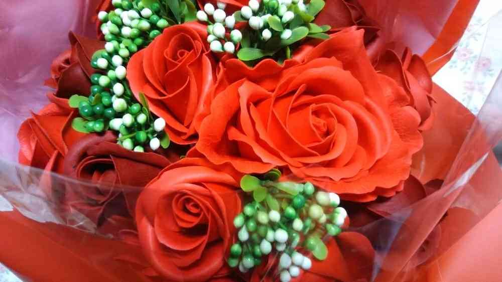 母が誕生日なのでシャボンフラワーをプレゼントしようと近所の花屋さんで買って来ました