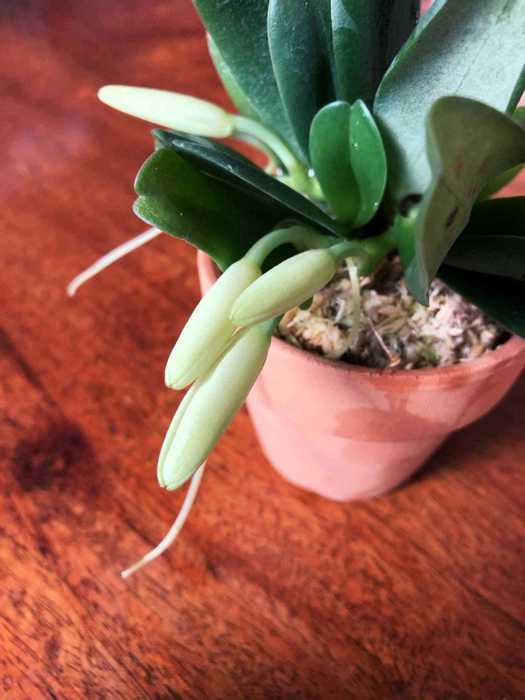 昨年秋に入手したもので、花芽が大きくなってきました。栽培に関する情報が一切ないので不安でしたが、なんとか冬も超えてくれたようです。写真では伝わるか分かりませんが、距が非常に長〜く伸びています。