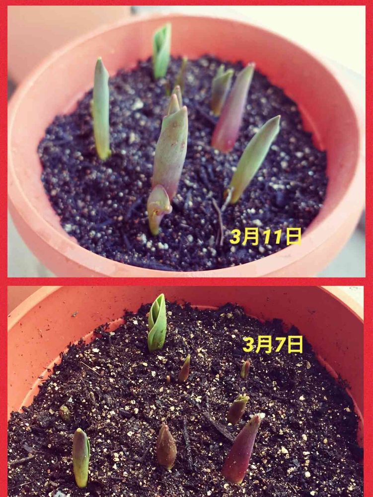 チューリップの芽が、たった4日でこんなに伸びました❗️