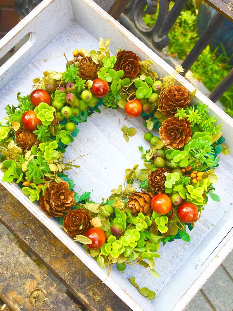 秋を感じさせるリースですね❤こんなのもらったら飛び上がって喜んじゃう🎵