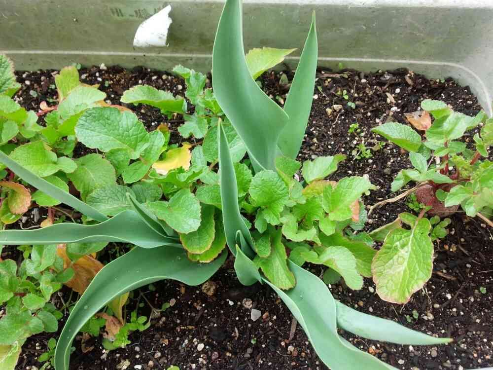 このプラ鉢には去年のチューリップの球根が植わってたんだと思います