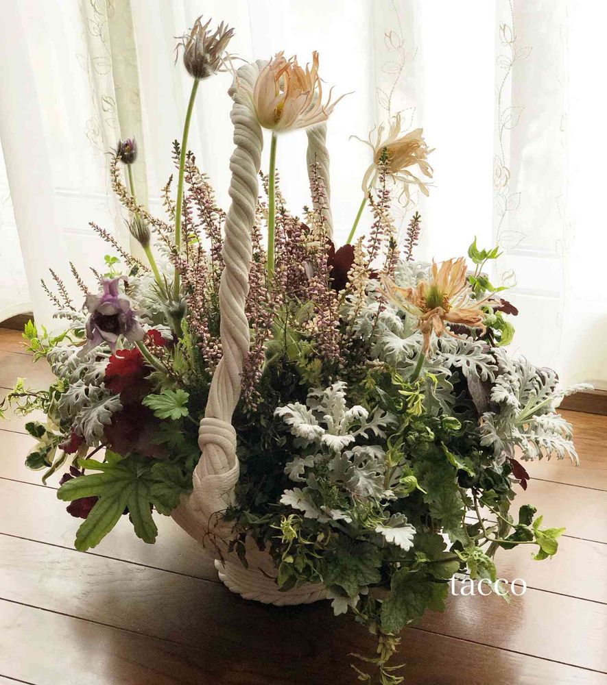 バスケットにお花やリーフを集めて
