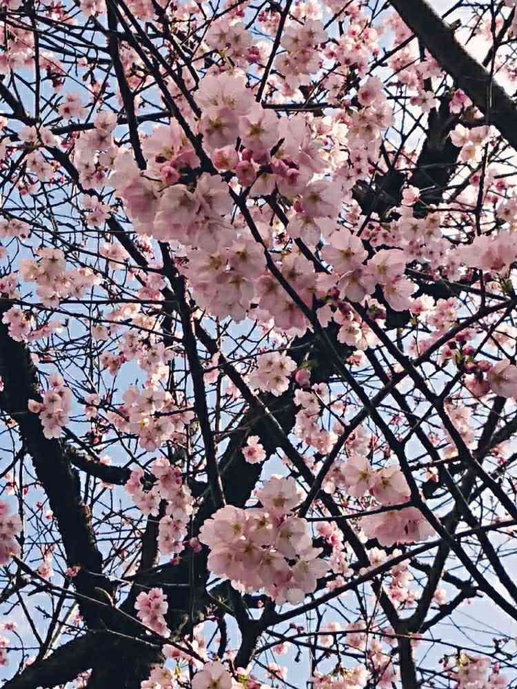 青空をバックに早咲きの桜が可愛く咲いてます。
