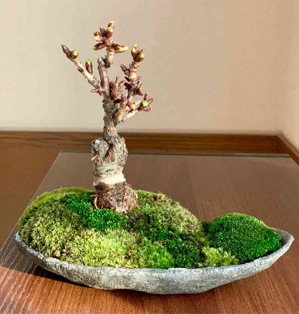 以前作った旭山桜の盆栽は、蕾をシャクトリムシに食べられ、花も咲かずに☆になりました。今回は大事に家の中で育てます🌸