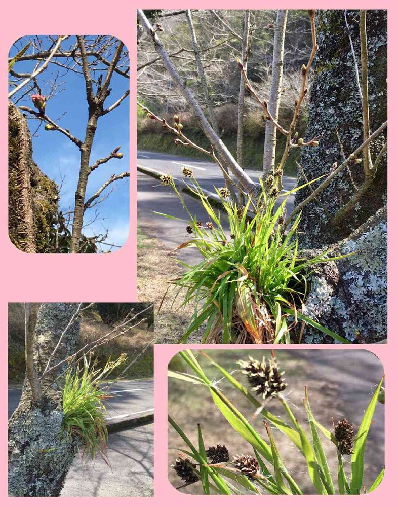 スズメノヤリを桜のウロに運んできたのはスズメさんかな?可愛い宿り木になってました❣️