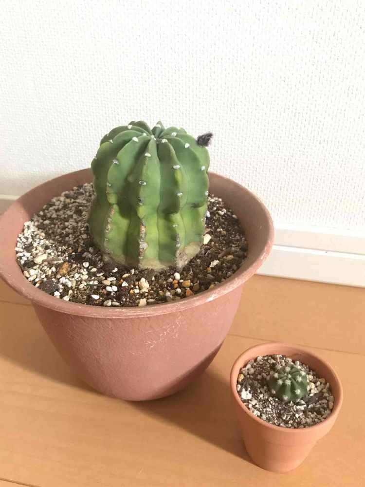 東京から新幹線にのって大阪まで来たサボテンくん。来た時は右のこどもくらいの大きさだったらしい。