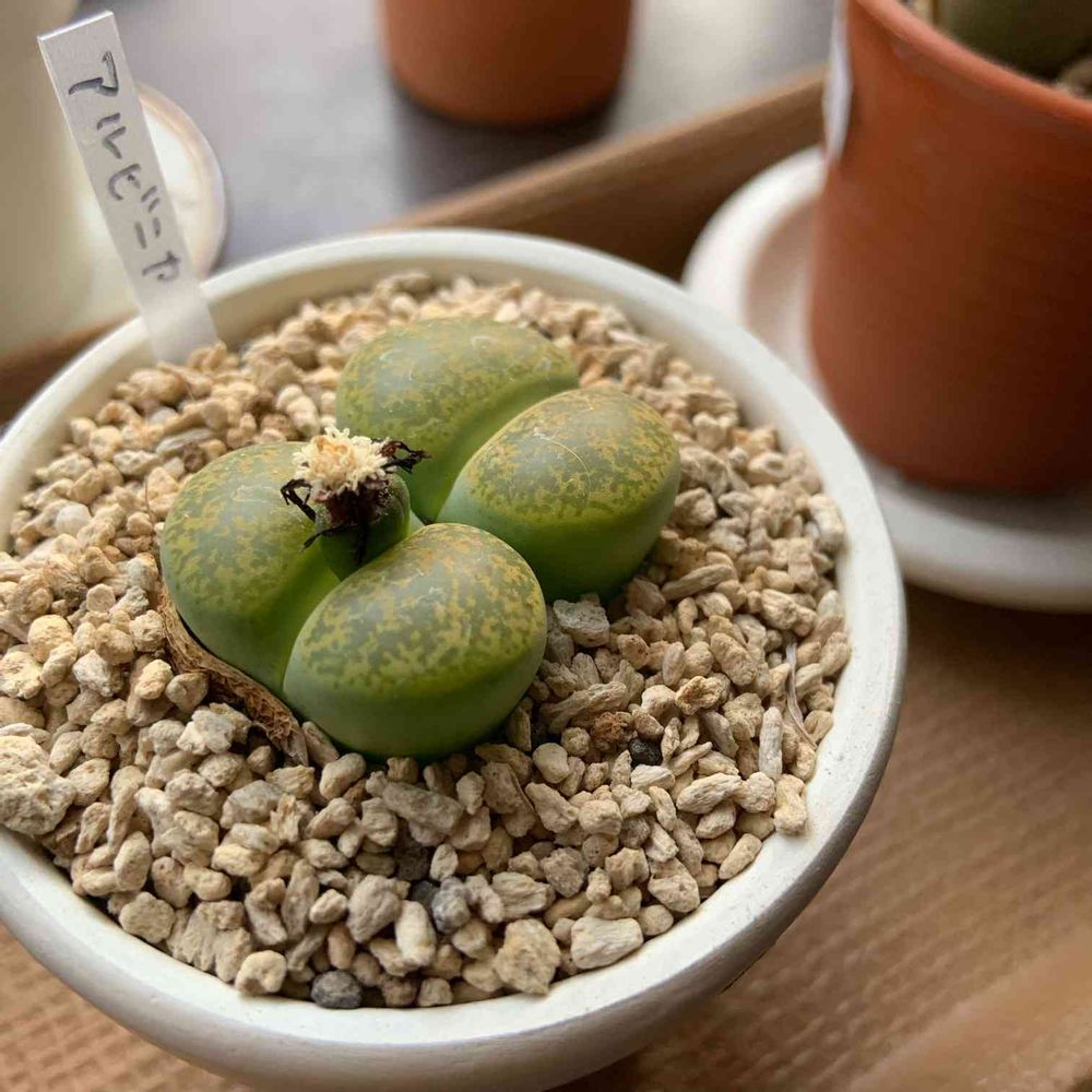 バスケットさんの窓辺,リトープス アルビニカ,多肉植物の投稿画像