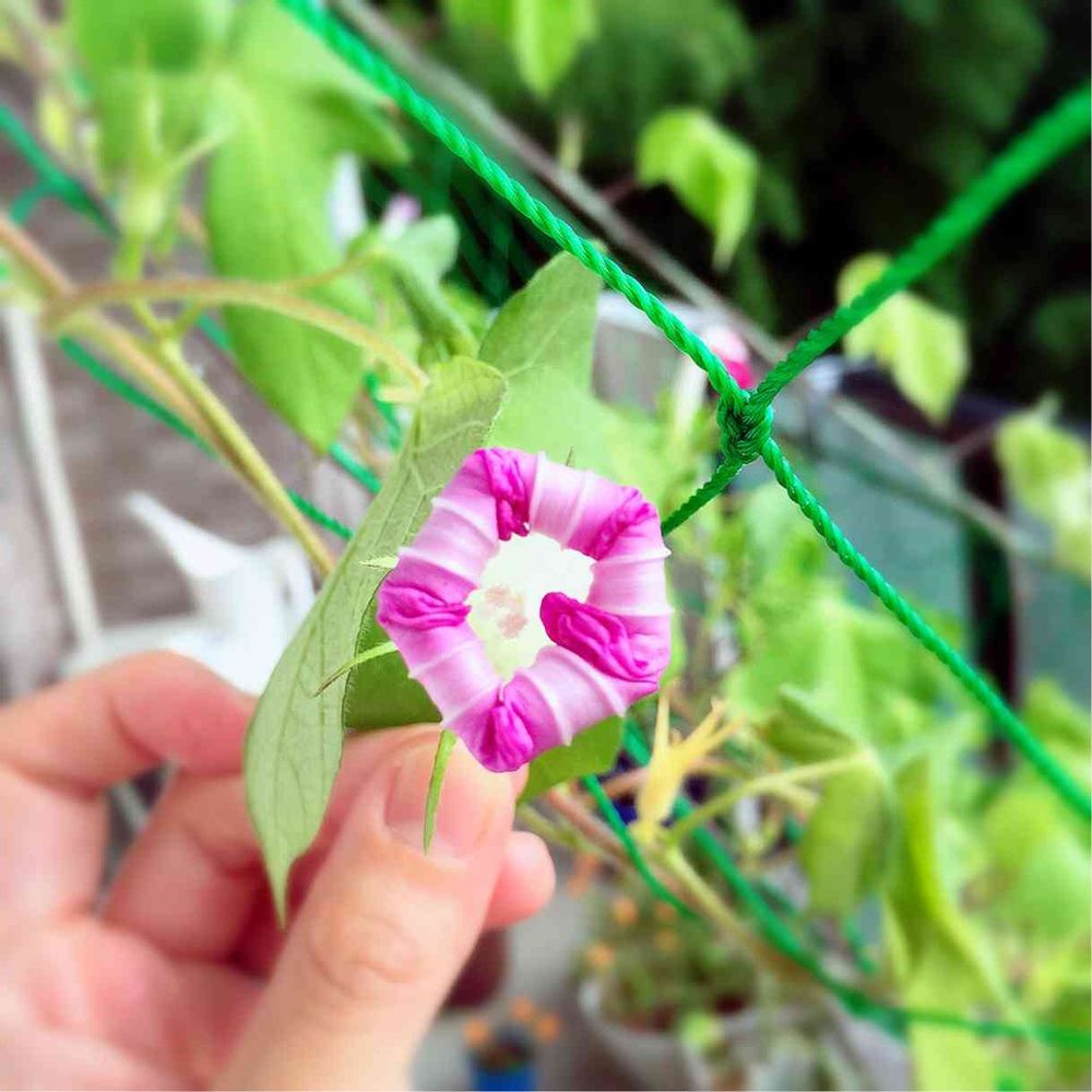 わが家のベランダの朝顔ネットは、台風の度に倒れては立てて…を繰り返しています😭
